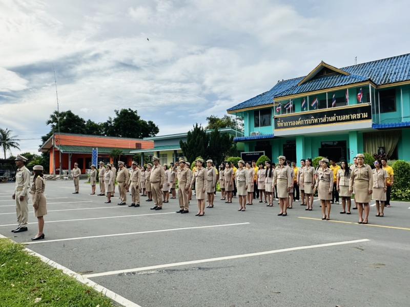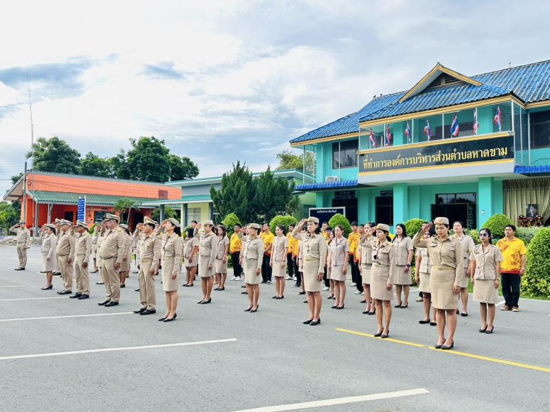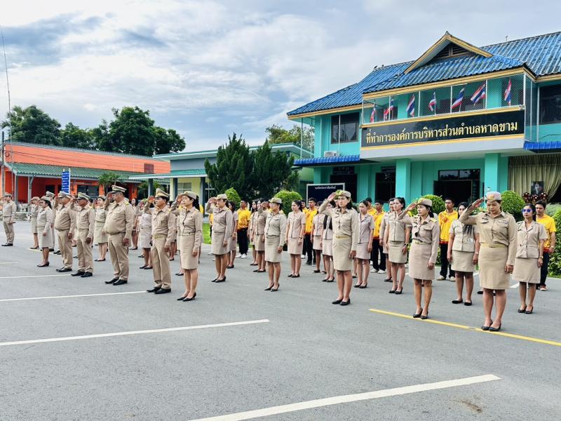 นายบุญรอด เขียวเพชร นายกองค์การบริหารส่วนตำบลหาดขาม พร้อมคณะผู้บริหาร พนักงานส่วนตำบลหาดขามและพนักงานจ้าง เข้าร่วมกิจกรรมเนื่องในวันพระราชทานธงชาติไทย (Thai News Flag Day)
