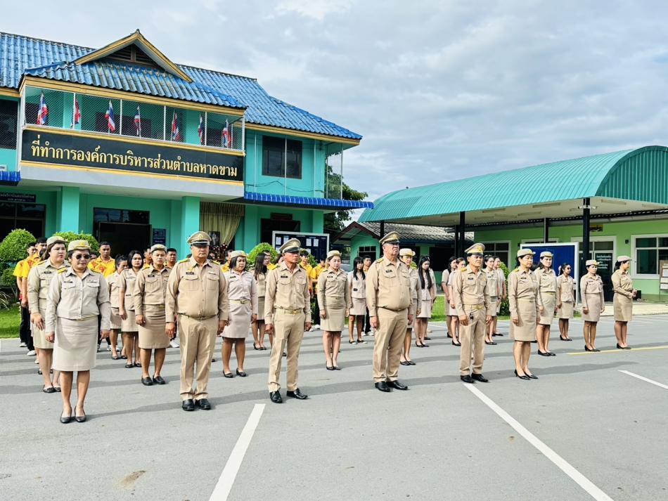 นายบุญรอด เขียวเพชร นายกองค์การบริหารส่วนตำบลหาดขาม พร้อมคณะผู้บริหาร พนักงานส่วนตำบลหาดขามและพนักงานจ้าง เข้าร่วมกิจกรรมเนื่องในวันพระราชทานธงชาติไทย (Thai News Flag Day)